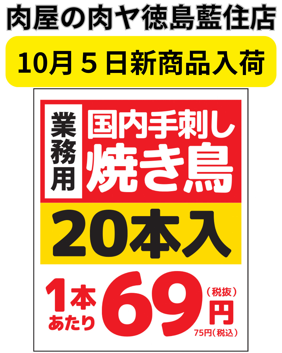 明後日10月5日(日)からは、新商品の業務用「焼き鳥(串)」の販売もスタート。