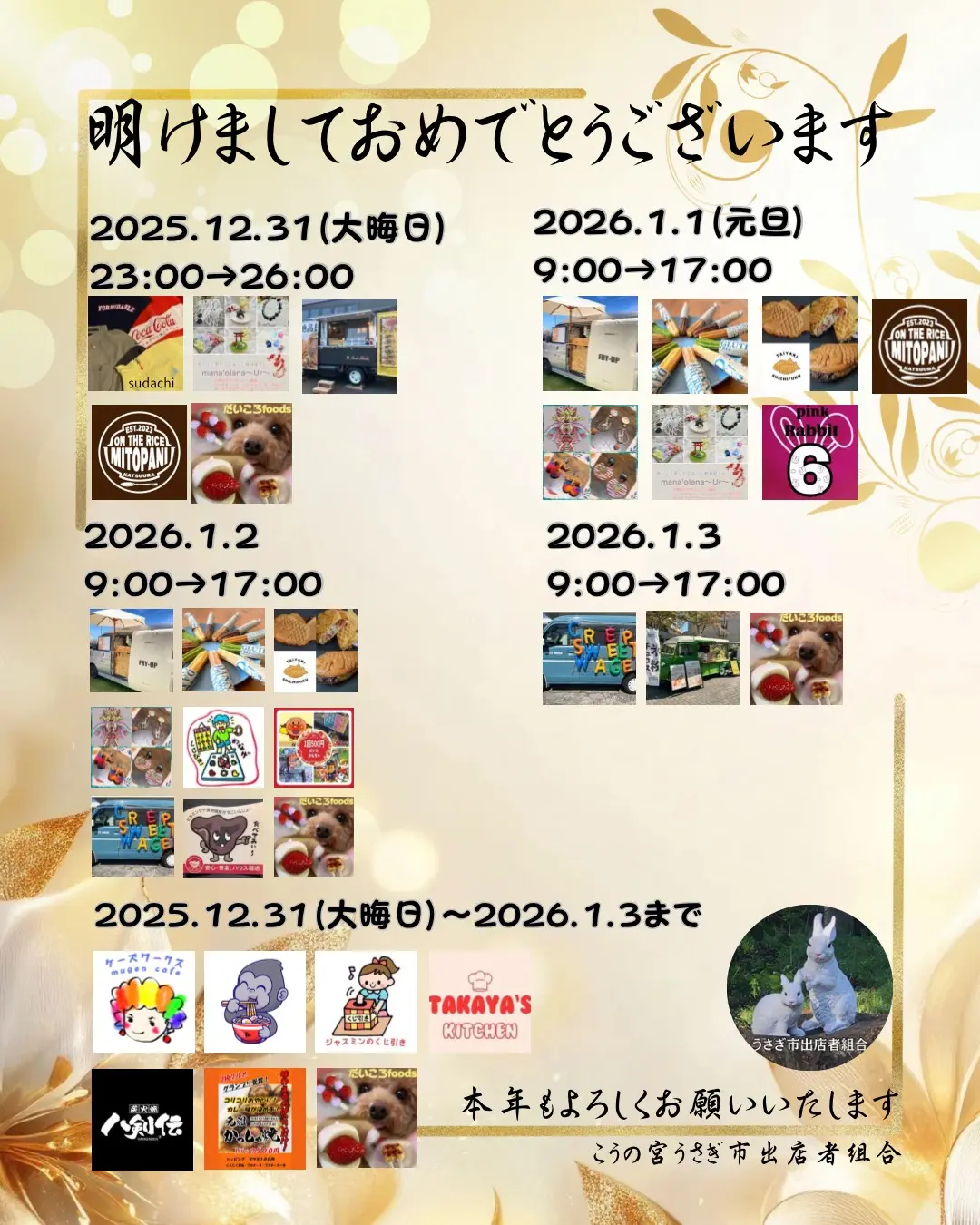 【徳島市】「年末年始のこうの宮うさぎ市」は4日間連続開催予定♪2025年12月31日(水)~2026年1月3日(土)まで毎日いろいろな出店が楽しめる!