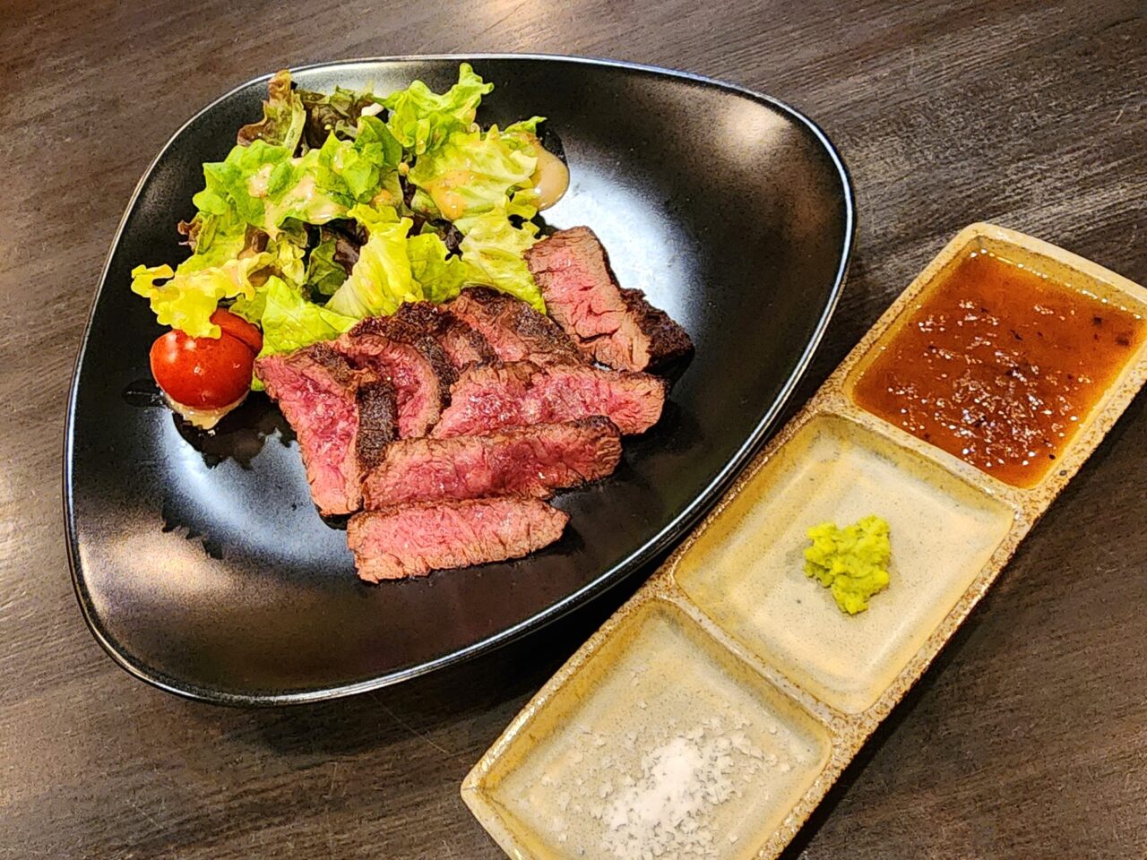 「牛ハラミの網焼き」はやわらかくて3種類の味付けが楽しめる一品。