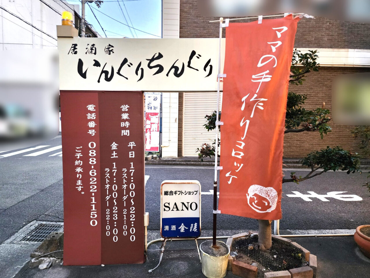 「いんぐりちんぐり」は徳島市佐古五番町にある佐古の隠れ家的居酒屋で、大通りから南に入った昔ながらの商店などが立ち並ぶ一角にある飲食店。