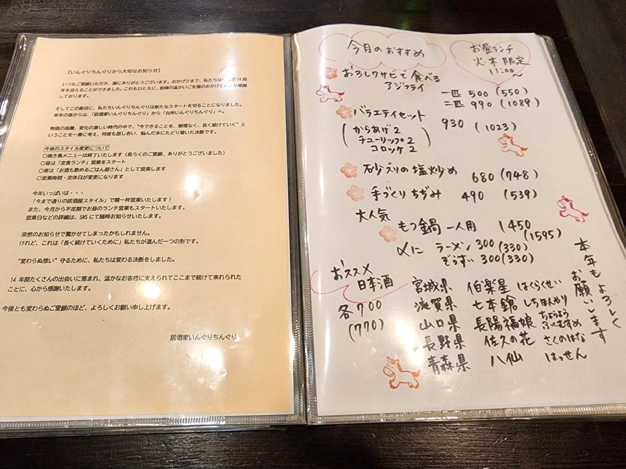 居酒屋「いんぐりちんぐり」テイクアウト販売スペース&告知物