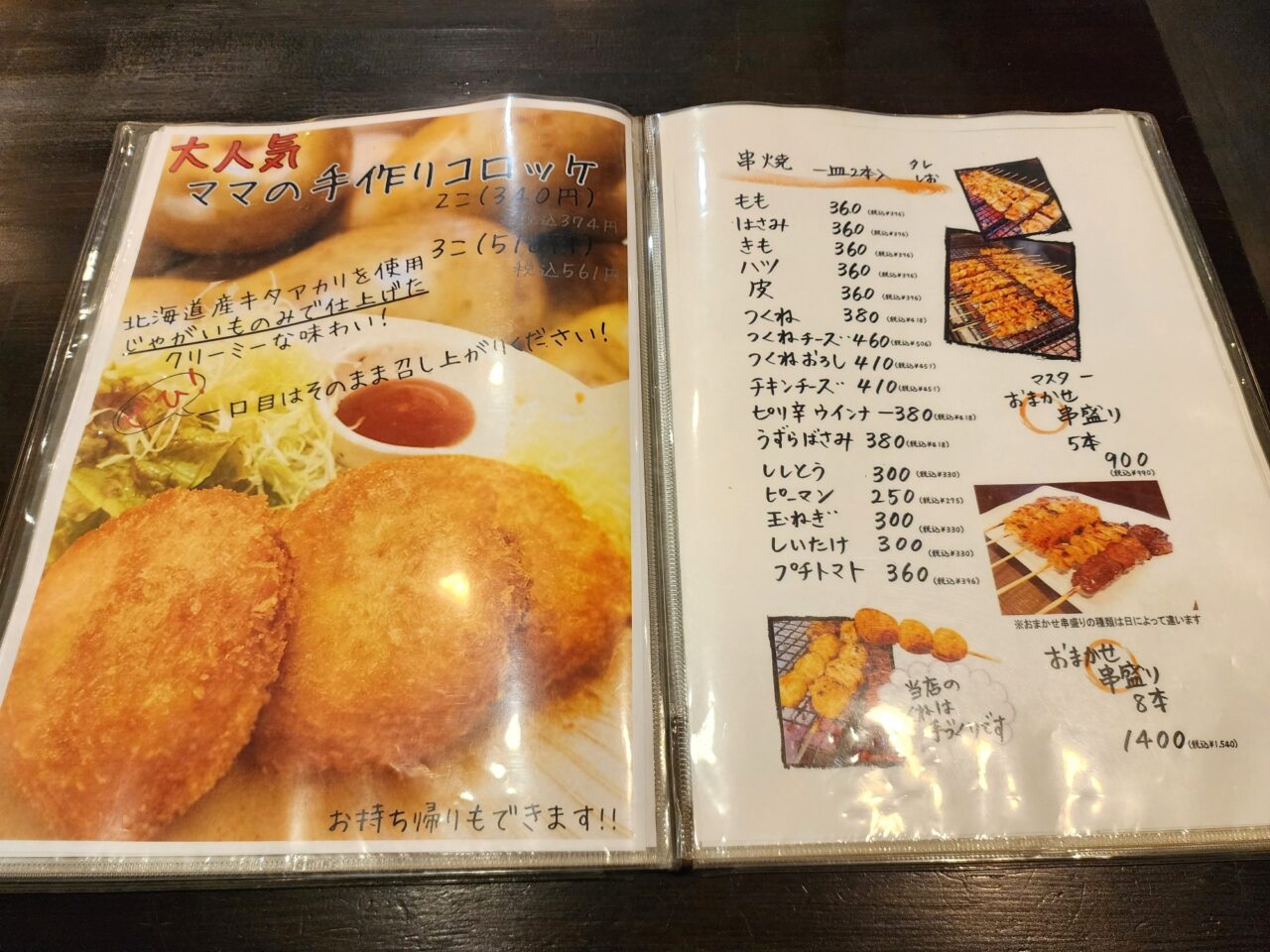 「ママの手づくりコロッケ」と「コロッケバーガー」はテイクアウトのほか、居酒屋メニューとともに店内飲食も可能です。※店内で飲食する場合には「お通し代」が必須。
