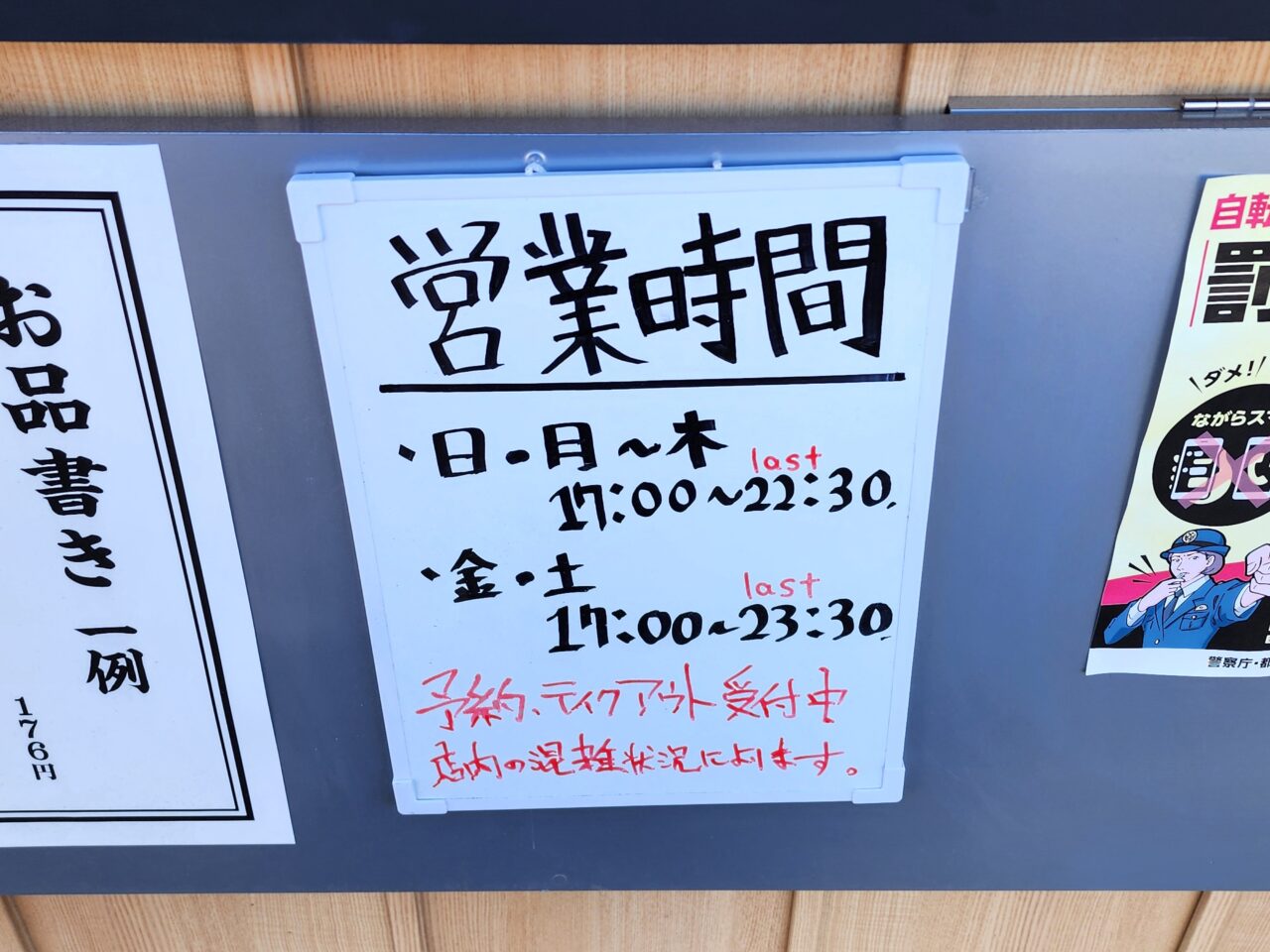 ・日曜日と火曜日~木曜日まで … 17:00~24:00(Lo.23:30) - 定休日