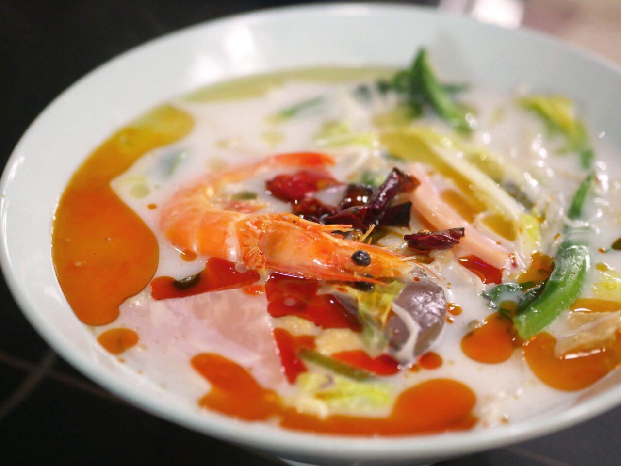 発祥の地とされる中国の「マーラータン」では、乾燥した湯葉の腐竹(ふちく)や魚卵を魚のすり身に包んだ団子の魚包蛋(ユーバオダン)など日本では珍しい具材もメジャーです。