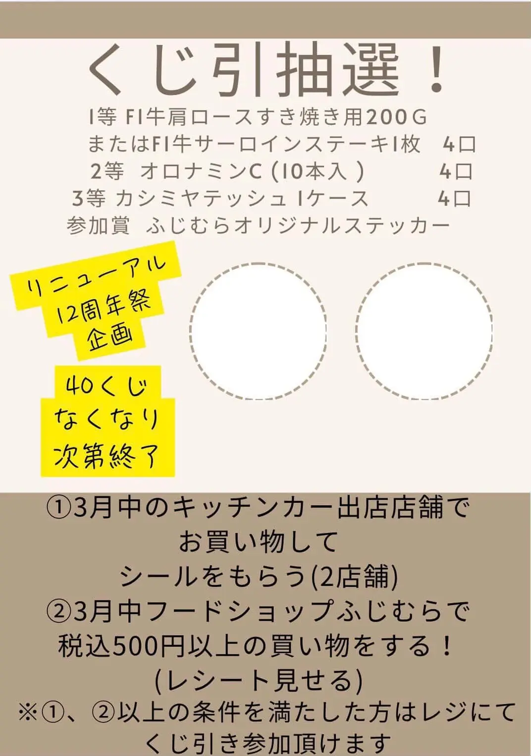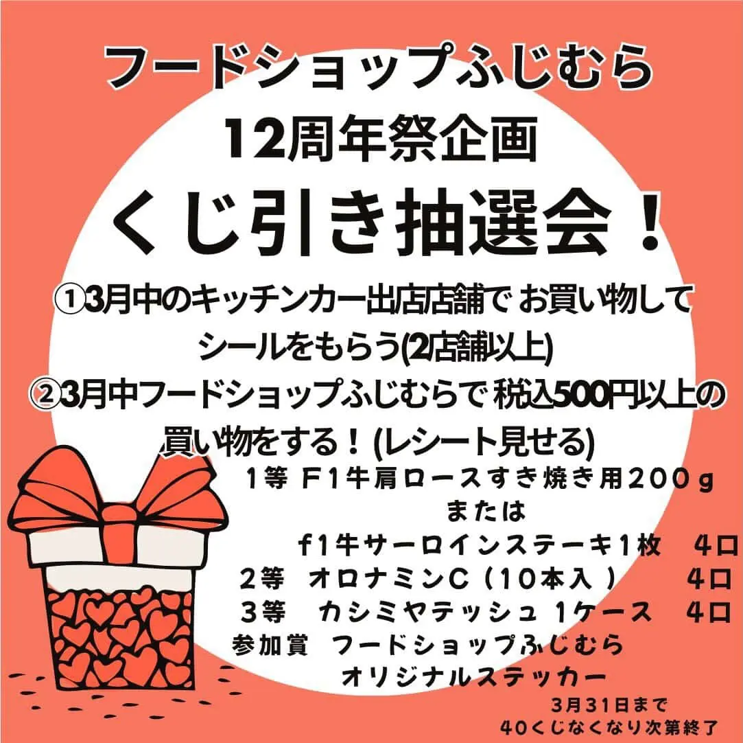 フードショップふじむら「12周年祭企画くじ引き抽選会!」内容詳細