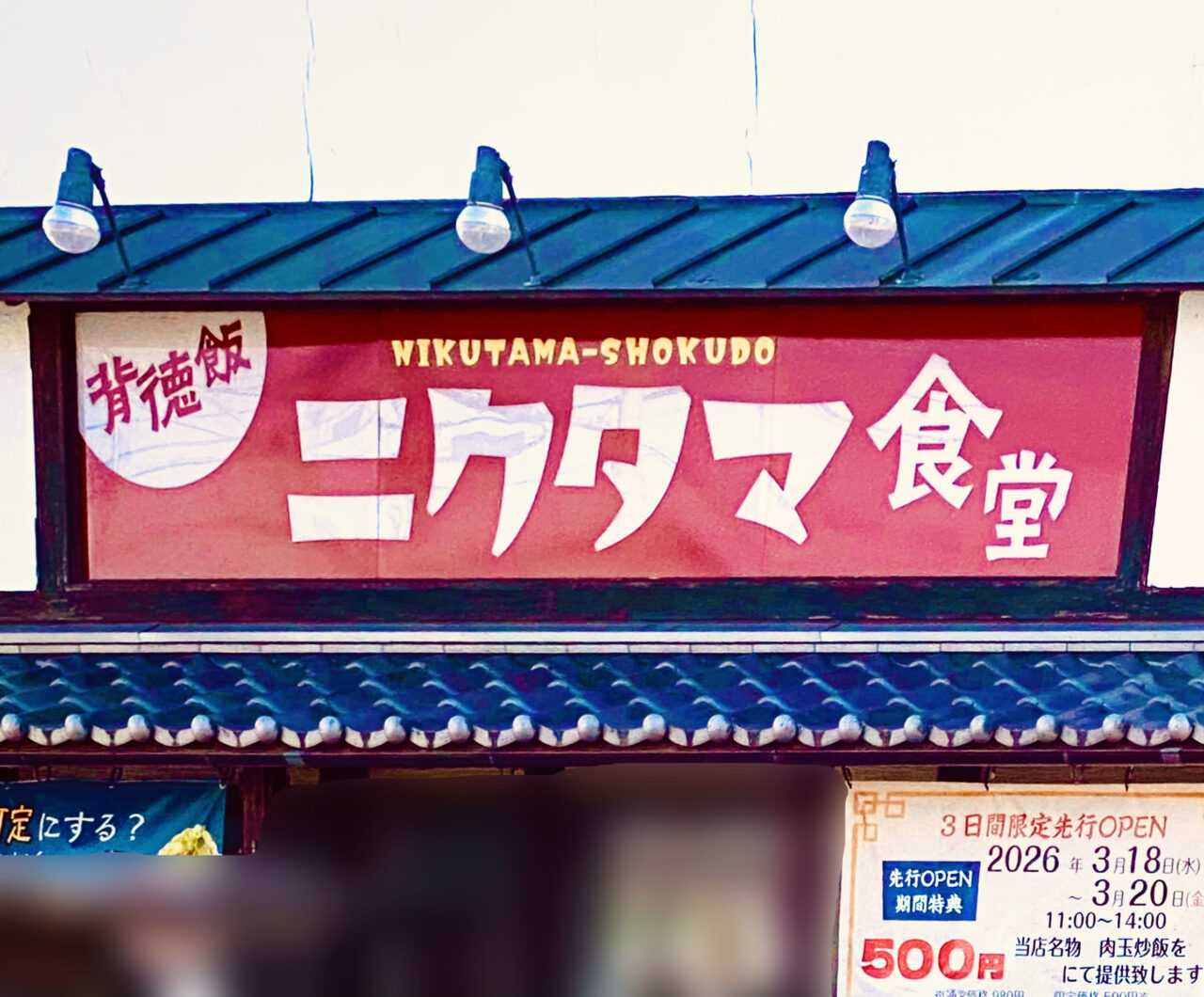 阿波國上櫻城主 篠原紫雲長房」様より、徳島県板野郡藍住町にオープン予定だった「ニクタマ食堂」の営業開始日が判明したとの情報や現地写真をお寄せいただきました。