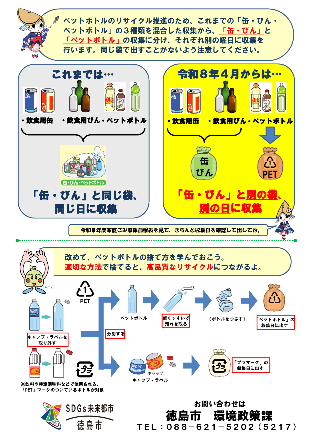 「徳島に住まう神 2026」様より、今月2026年4月1日(水)より徳島市で収集するゴミに関してペットボトル単体での分別がスタートするとの情報をお寄せいただいていました。