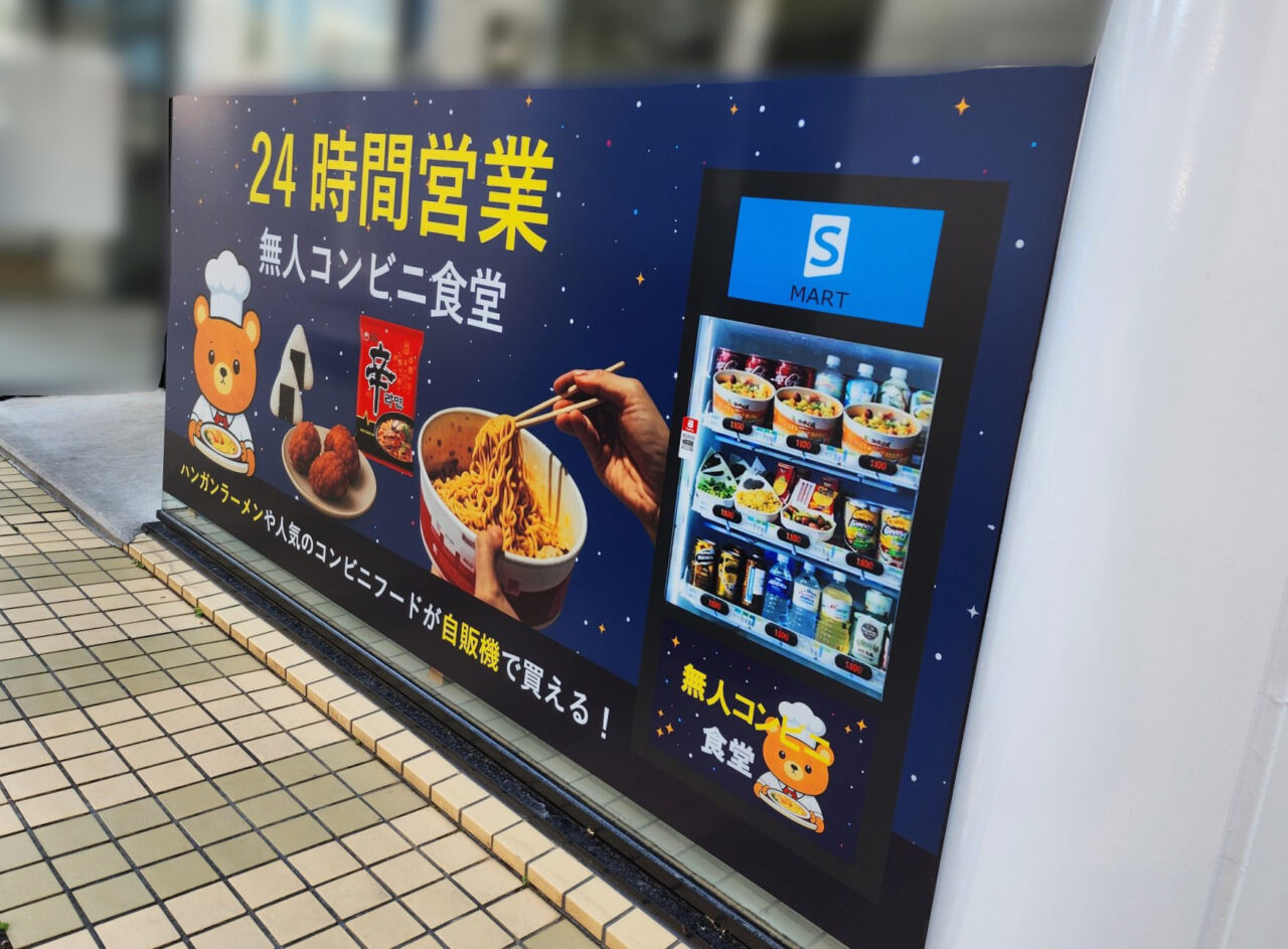 「ポチャラボ無人コンビニ食堂」店舗外観。2026年3月23日撮影。