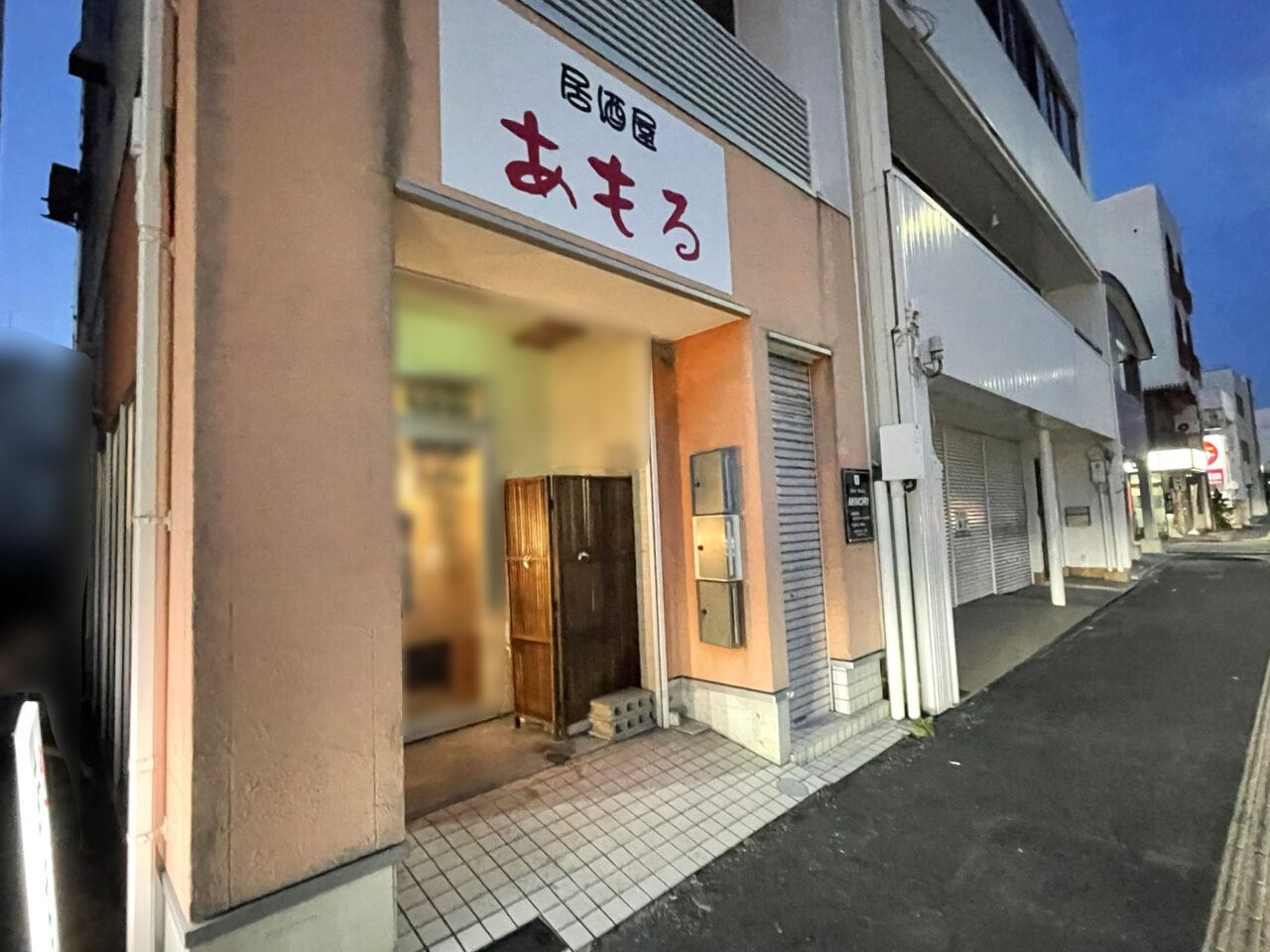 こちらの居酒屋「あもる」はオープンから10年以上の老舗で、出入口が少し奥まっている隠れ家的外観の飲食店です。